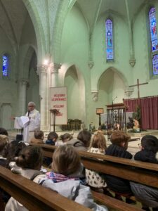 Avant de nous quitter pour les vacances de Noël, nous avons célébré Noël avec tous les élèves de l’école. La célébration s’est déroulée à l’église, dans un esprit ouvert à chacun, permettant à tous de se sentir à leur place. Par la suite, nous avons eu le plaisir d’accueillir Monsieur le Maire, qui est venu offrir des chocolats à tous les enfants, pour clôturer cette fin d’année dans la joie et le partage.